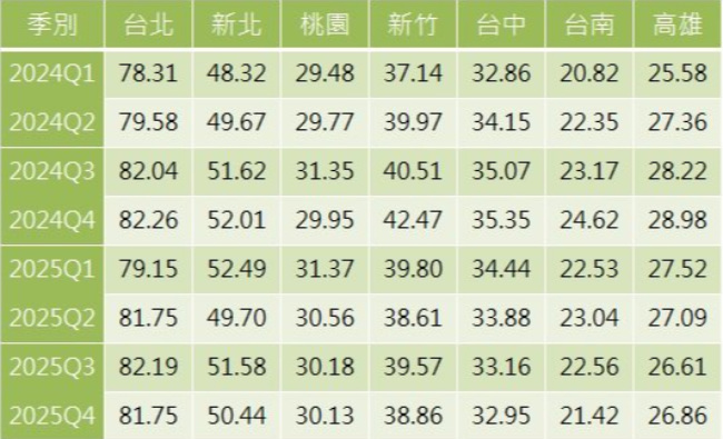 大中小2025年第四季都會區季指數