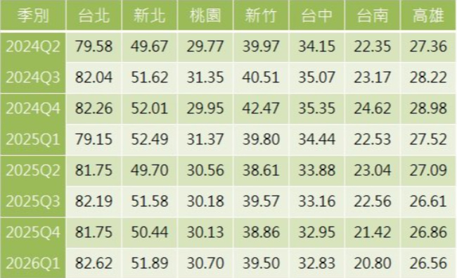 大中小2026年第一季都會區季指數