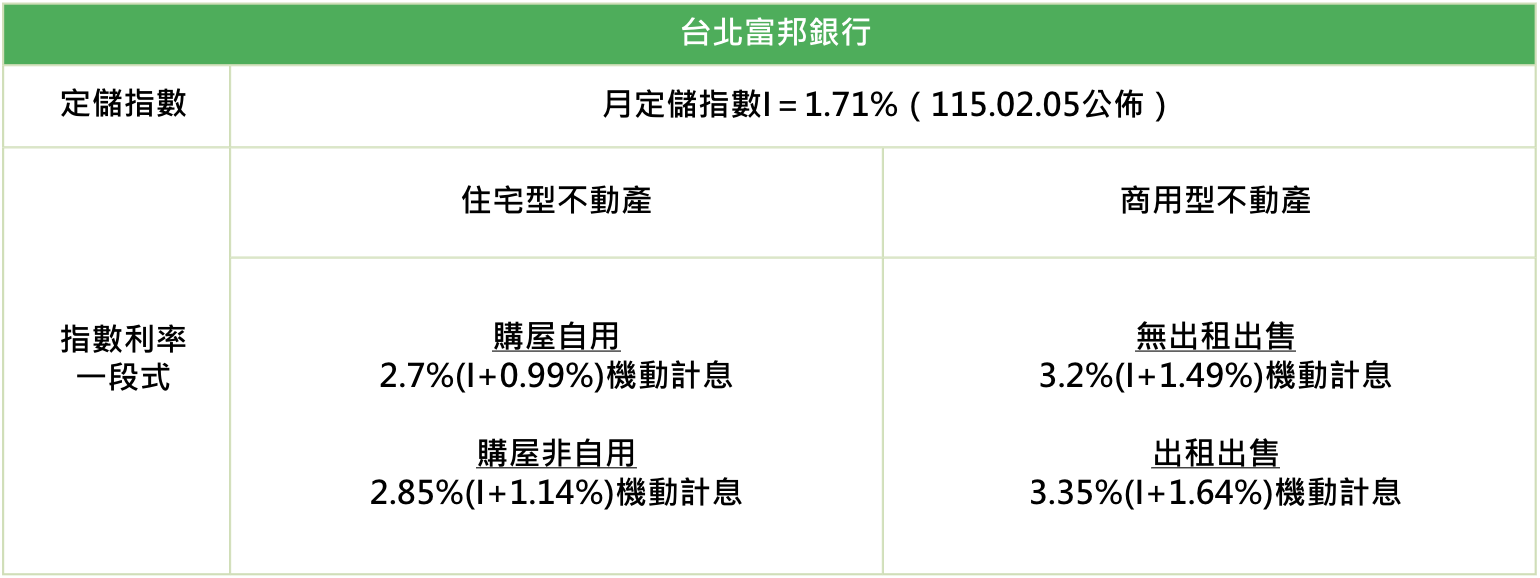 2026/115年台北富邦銀行房屋貸款